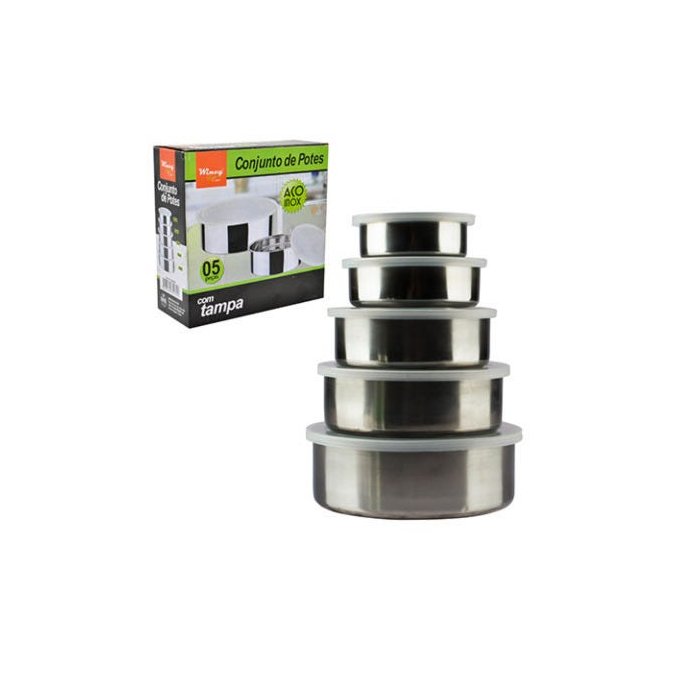 Conjunto de Pote de Inox com Tampa Plástica 5 pecas