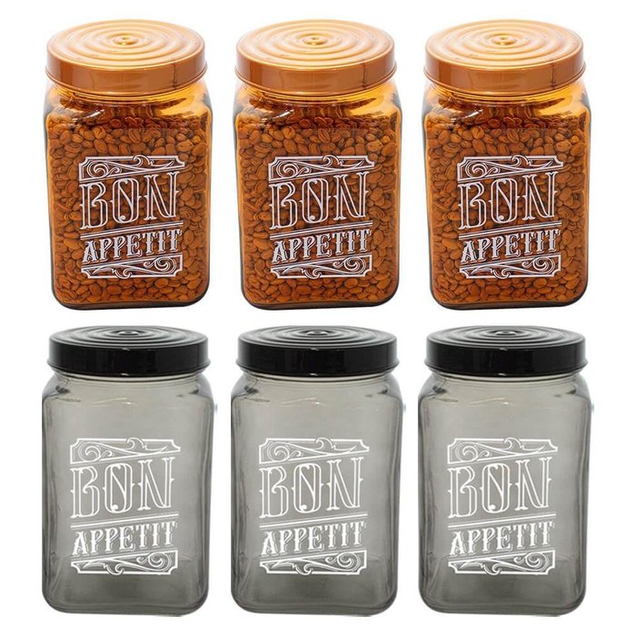 Conjunto de Potes de Vidro com Tampa Bon Appetit Preto e Bronze 1,5L 6 peças - Casambiente
