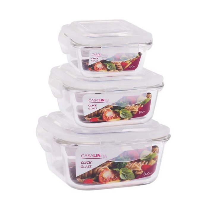 Os potes com tampas herméticas Click Glass são ideais para o dia a dia e garantem o armazenamento adequado de diversos alimentos. Vai ao forno, micro-ondas e freezer. Anel de silicone removível. Mantém os alimentos frescos por mais tempo. Evita que o cheiro se espalhe. Sem risco de vazamento. Possui 4 travas. Fácil de limpar e higienizar. Super-resistente.