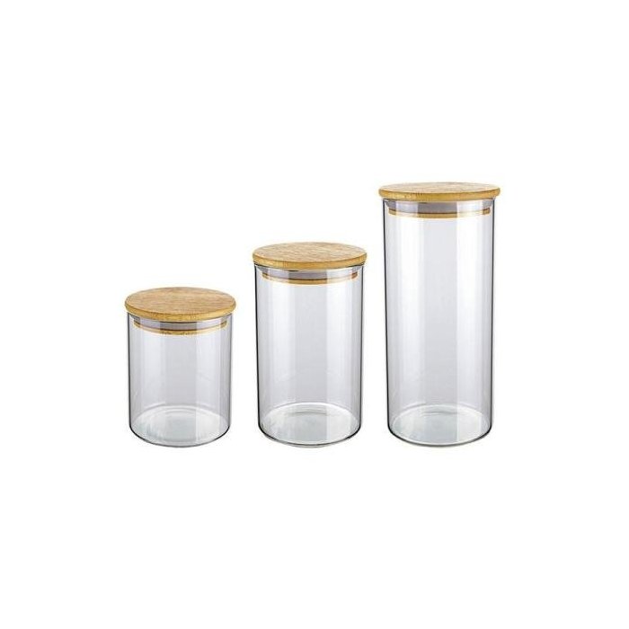 Conjunto de Potes de Vidro Slim com Tampa Bambu 3 peças VDR6804-3-Euro Home - Transparente