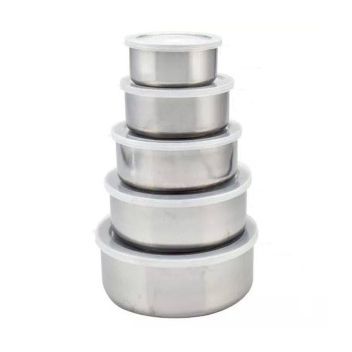 Conjunto de Potes e Tigelas Inox com Tampas 5 Peças