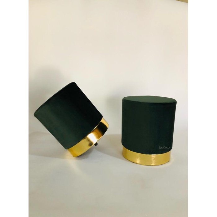 Conjunto de Puff com Detalhes Dourado no Rodapé - Decoração para Sala de Estar - Verde Musgo - Suede