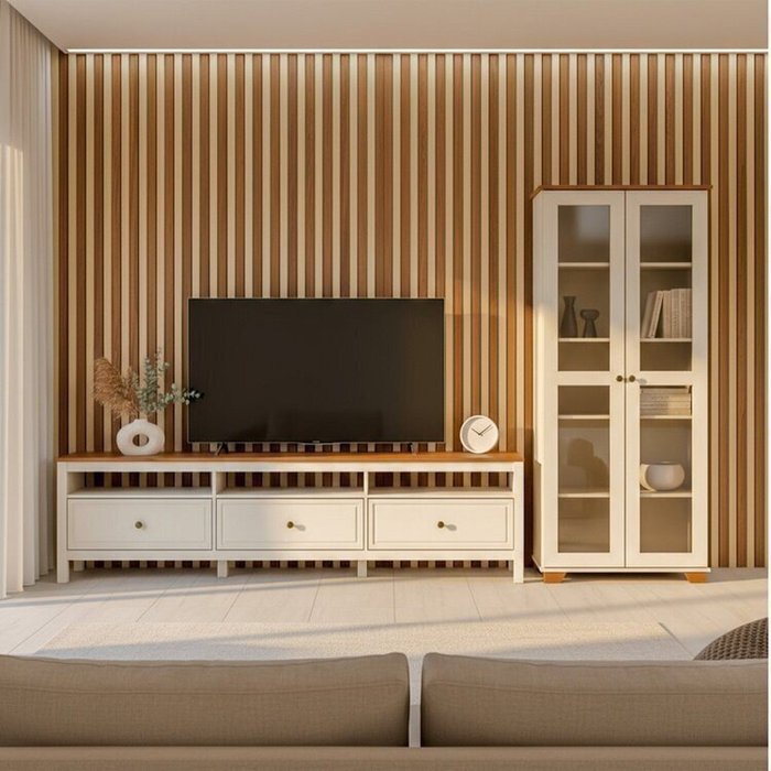 Conjunto de Sala 2 Peças com 1 Rack e 1 Cristaleira Madeira Maciça Ananda CabeCasa MadeiraOriginals Off White/Mel