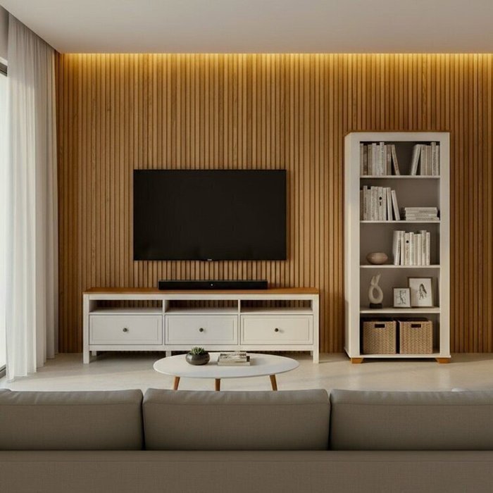 Conjunto de Sala 2 Peças com 1 Rack e 1 Estante Ananda CabeCasa MadeiraOriginals Off White/Mel