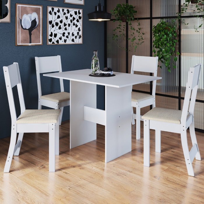 Conjunto De Sala De Jantar Fidelitá Siena Com 4 Cadeiras Branco/Linho