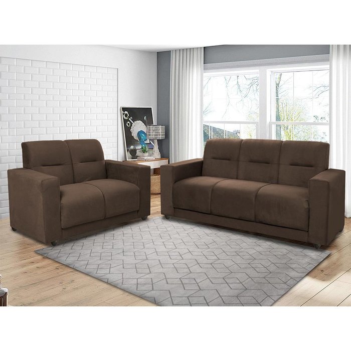 Conjunto de Sofá 2 e 3 Lugares Santiago Cama inBox 1.25x1.75m Suede Café Café