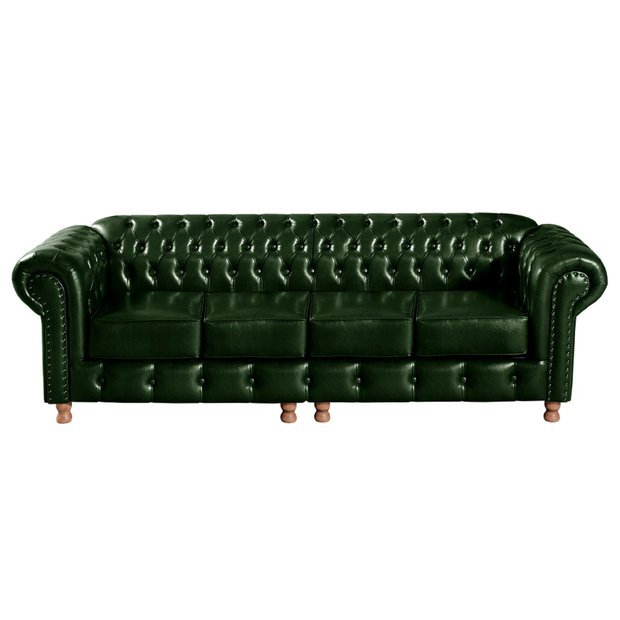 Conjunto de Sofá 4 Lugares e 2 Poltronas Chesterfield Luís Xv Verde