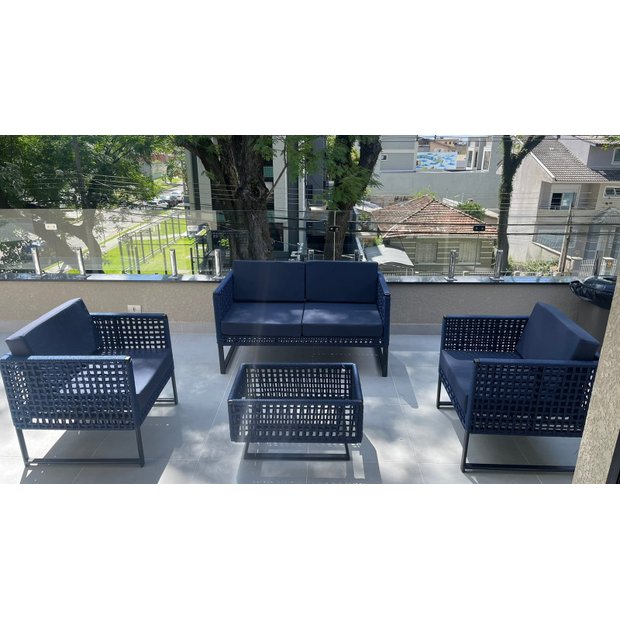 As almofadas de assento e encosto são em tecido impermeável, que bloqueia líquidos e poeiras, não sendo aconselhável a permanência em ambiente externo, expostos a intempéries climáticas (chuva).