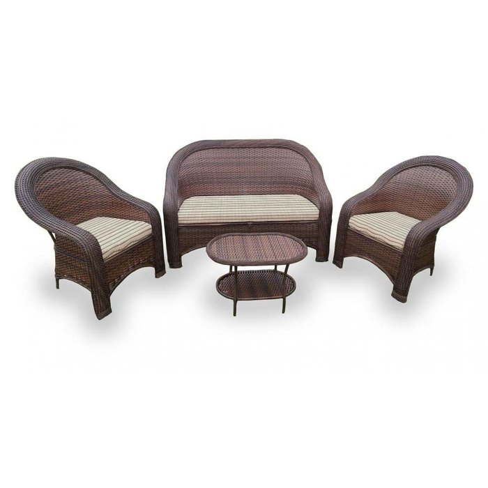 Conjunto de Sofá Fibra Sintética Karibe - 1 Sofá 2L + 2 Poltronas + 1 Mesa Centro - Tecido Cabanas Bege/ Marrom