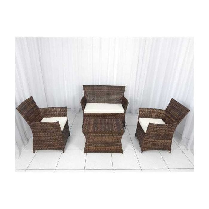 A estrutura em aço galvanizado envolto em fibra sintética garante a qualidade de nossos produtos. Nossas almofadas são revestidas com tecidos Acquablock, compostos por 72% algodão e 28% poliéster, com acabamento impermeável. Confira os tecidos disponíveis e todas as vantagens Acquablock aqui. Conjunto composto por: 1 Sofá 2 lugares; Dimensões A88 x L115 x C65 cm 2 poltronas; Dimensões A88 x L68 x C65 cm 1 Mesa de centro Quadrada; Dimensões A44 x L60 x C40 cm Por se tratar de confecção artesanal, as dimensões dos produtos podem sofrer variação. Cuidados na manutenção do seu móvel Material de fibra sintética é ideal para utilização em ambientes externos, necessitando apenas de pequenos cuidados para que seu móvel mantenha sua aparência como novo. O ideal é limpar as peças semanalmente, usando uma escova com cerdas macias molhada em uma mistura de água com sabão neutro ou pano úmido. Na sequência, deixe os móveis secarem naturalmente à sombra. Durante a higienização de sintéticos, respeite também o sentido das fibras e nunca aplique força demasiada para não comprometer a superfície do trançado. Nunca utilizar lavadoras de pressão sobre as fibras. As almofadas de assento e encosto são em tecido impermeável, que bloqueia líquidos, poeiras e fungos, não sendo aconselhável a permanência de estofados em ambiente externo, expostos a intempéries climáticas (chuva). Garantia Este móvel tem garantia de quatro (04) meses, se usado em condições normais, contra defeitos de fabricação. Essa garantia não cobre defeitos causados por uso inadequado ou abusivo, falta de cuidados, desbotamento natural dos tecidos ou riscos decorrentes do uso.