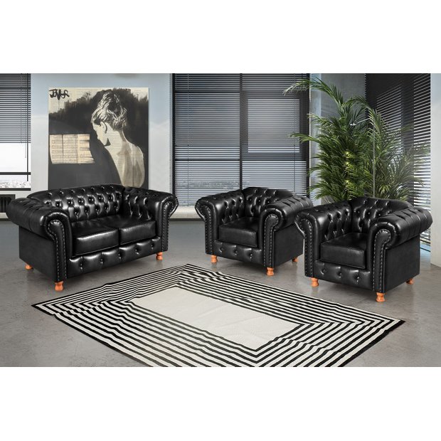 Conjunto de Sofá Luís Xv 2 Lugares + 2 Poltronas Chesterfield Capitonê Preto