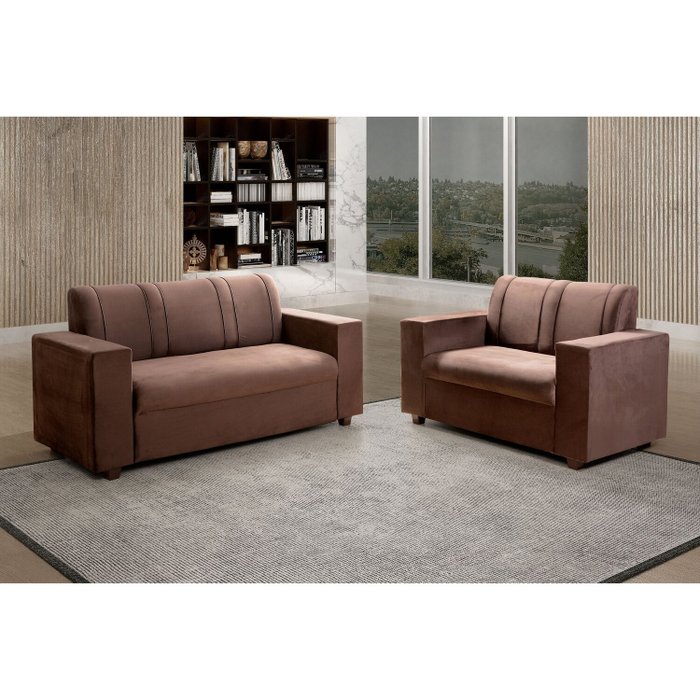 Conjunto de Sofá Maceió 2 e 3 Lugares Suede Marrom