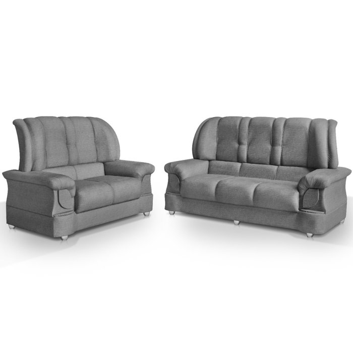 Conjunto de Sofá Mega Big 3 e 2 lugares em Tecido com encosto alto – Cinza