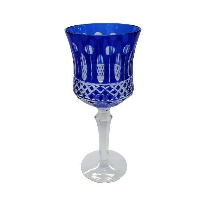 Conjunto de Taças para Água, Lapidado à mão, 6 peças, Azul Escuro em Vidro Cristalino.
