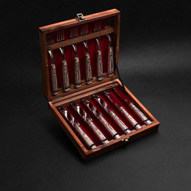Elegância e funcionalidade reunidas em um conjunto de talheres completo, desenvolvido para quem valoriza qualidade, acabamento refinado e presença à mesa. Produzido de forma artesanal, cada peça passa por um processo cuidadoso de fabricação, garantindo durabilidade, resistência e excelente desempenho no uso diário ou em ocasiões especiais.