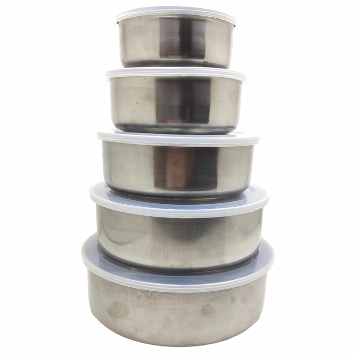Conjunto de Tigelas Potes de Aço Inox 5 Tamanhos Tampa Plastica Organizador de Alimentos
