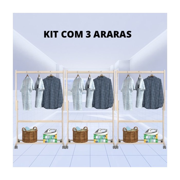 Conjunto De Três Araras Para mostruario De Roupa Com Rodinha