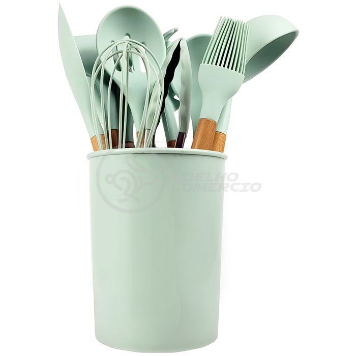 Conjunto de Utensílios 12 Peças de Silícone Resistente a Altas Temperaturas Fácil de Limpar - Verde Verde Claro