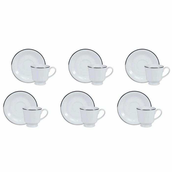 Conjunto de Xícara de Café com Pires 06 Peças Itamaraty Prata Schmidt Branco