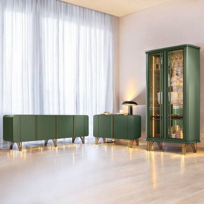 Conjunto Decorativo 1 Cristaleira e 2 Buffets Texas/virginia/bambino Verde Pistache G26 - Gran Belo