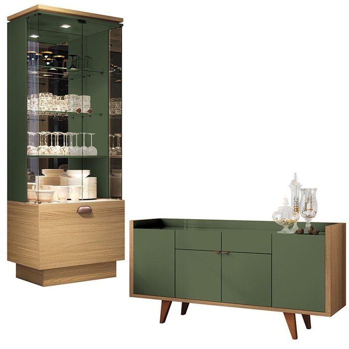 Conjunto Decorativo Cristaleira e Buffet Aparador Peggy-albâni Verde Pistache-freijó G26 - Gran