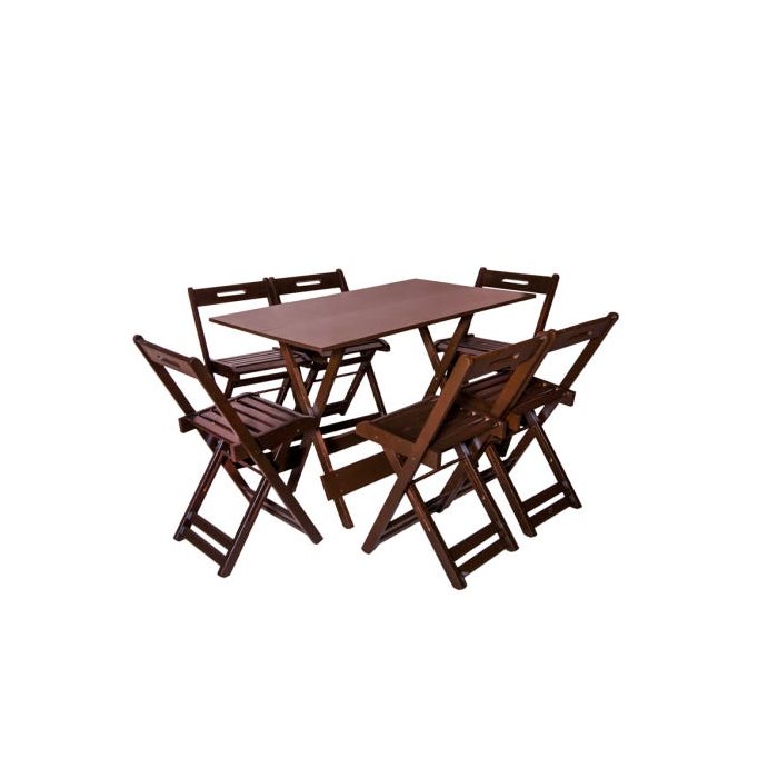 Conjunto Dobrável 120x70 com 6 Cadeiras - Imbuia - Btb Móveis