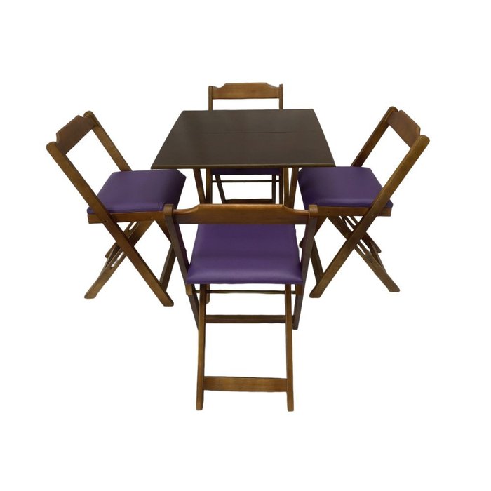 Conjunto Dobrável 70x70 Imbuia com 4 Cadeiras Estofada Roxo Imbuia