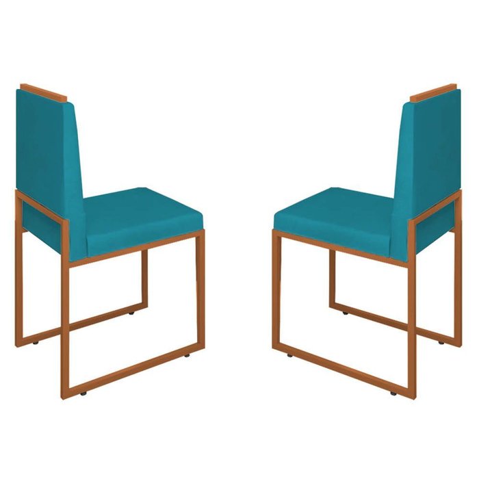Conjunto Duas Cadeiras Sala Jantar Barcelona Base Bronze:azul Turquesa azul turquesa