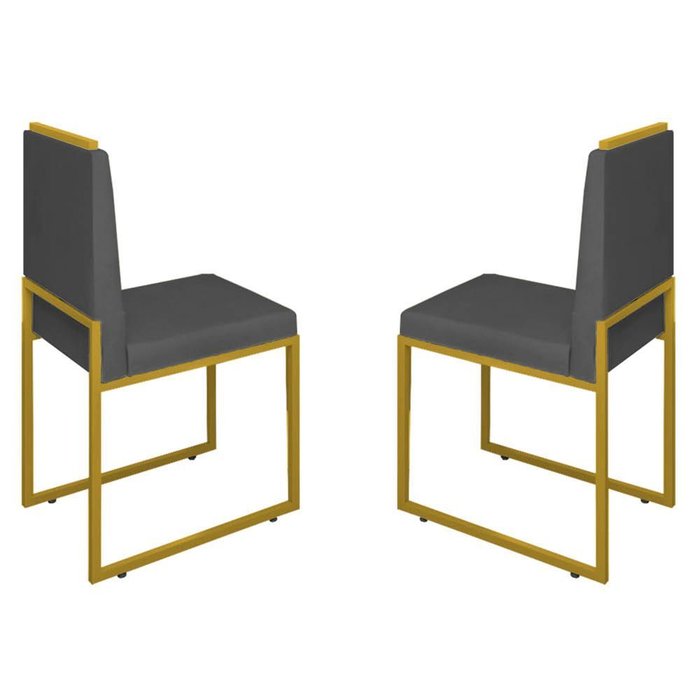 Conjunto Duas Cadeiras Sala Jantar Barcelona Base Dourado:cinza