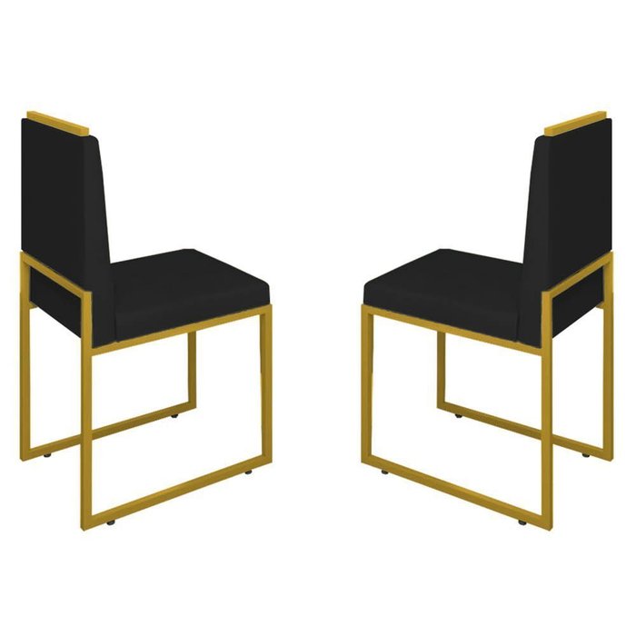 Conjunto Duas Cadeiras Sala Jantar Barcelona Base Dourado:preto preto