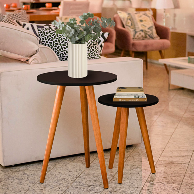 Transforme seu espaço em um ambiente organizado e elegante com o Kit 2 Mesas Retro com Pés Palito em Madeira Maciça!