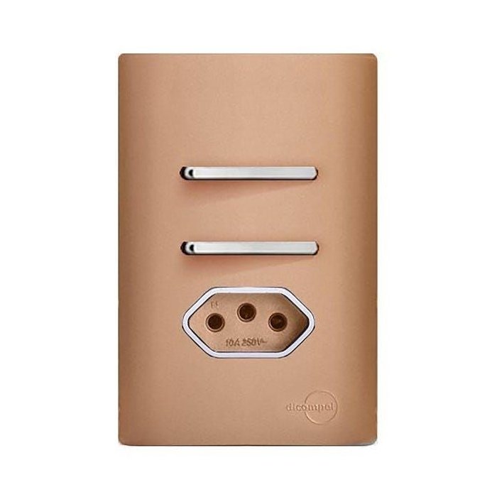 1. PLACA P/ 2 INTERRUPTORES + TOMADA COM SUPORTE 4X2 - DICOMPEL NOVARA OURO ROSE - DNV1500/79OR