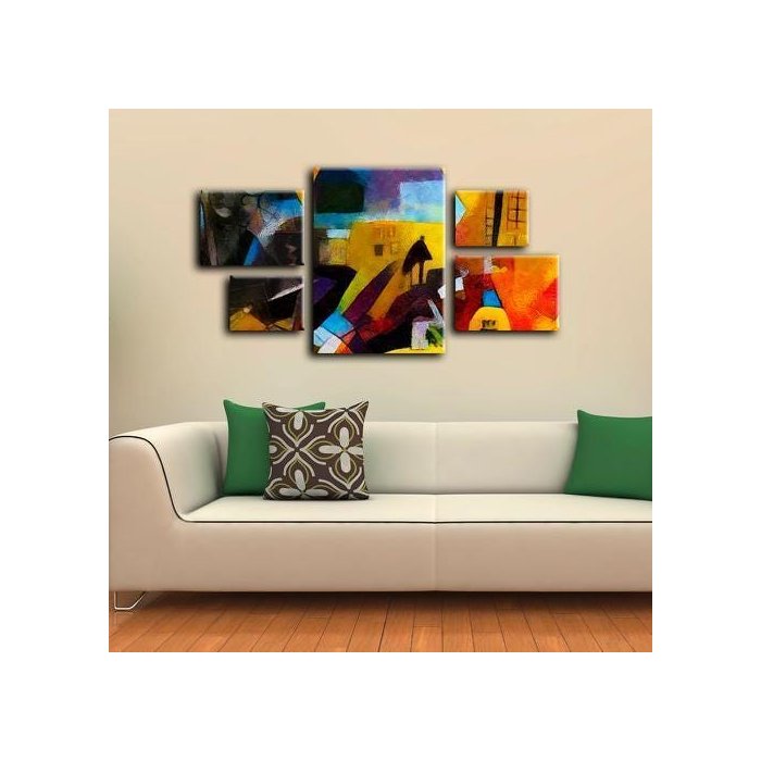 Conjunto em Tela Assimétrico Abstrato Ação - 0,6 x 1,09 m