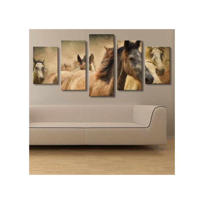 Conjunto em Tela Canvas Cavalos Selvagens - 0,60x 1,20m