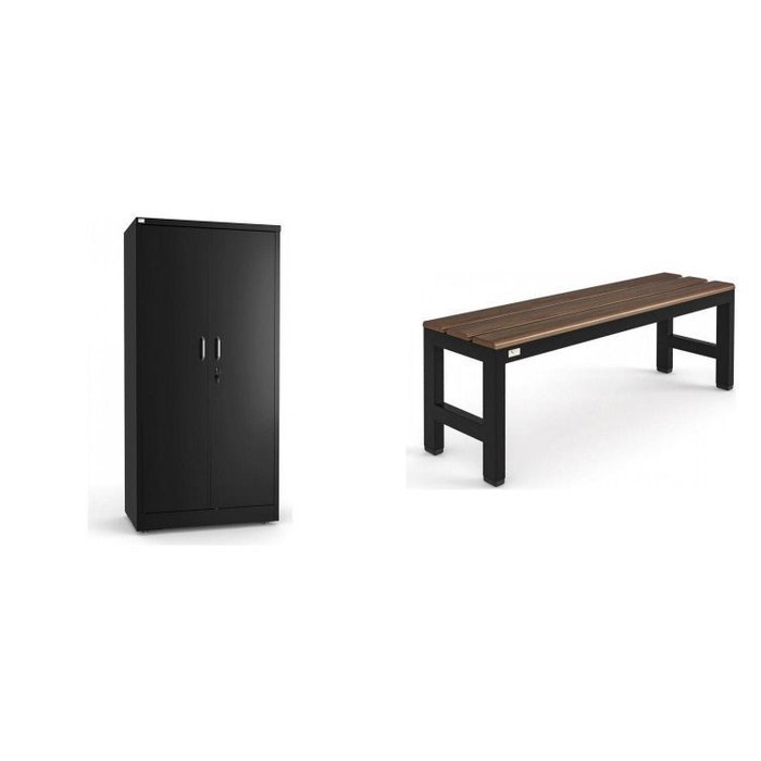 Conjunto Escritório com Armário Alto e Banco em Aço Isma Preto/Marrom