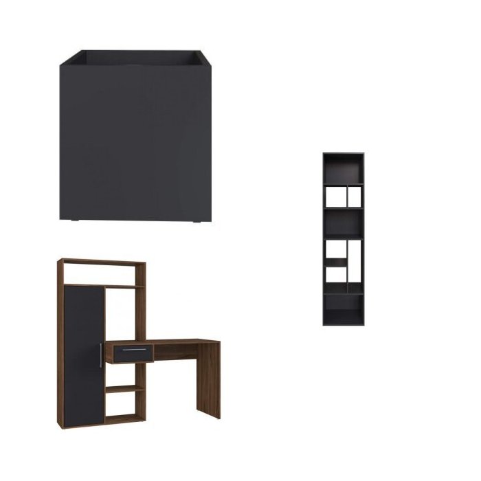 A Estilare tem o conjunto ideal para deixar a sua casa ainda mais linda e completa, com essa escrivaninha, livreiro e cachepôt, você pode decorar e organizar com seus objetos e decorações preferidas. É produzido em melamina 15mm BP, possui tratamento contra cupins e é ecologicamente correto, o que garante um ótimo acabamento e durabilidade da peça.