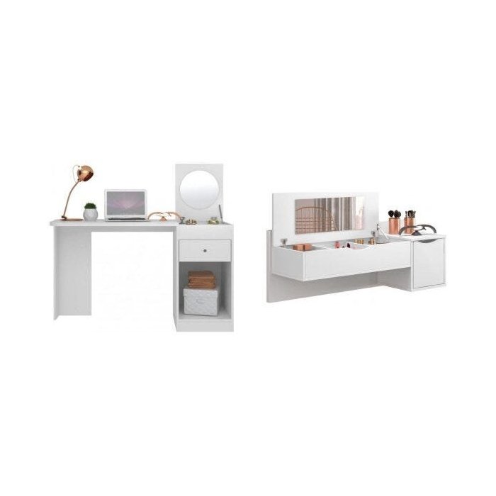 Conjunto Escrivaninha com Espelho Capricho e Penteadeira Camarim com Espelho Rouge Espresso Móveis Branco Fosco Liso/Branco Fosco