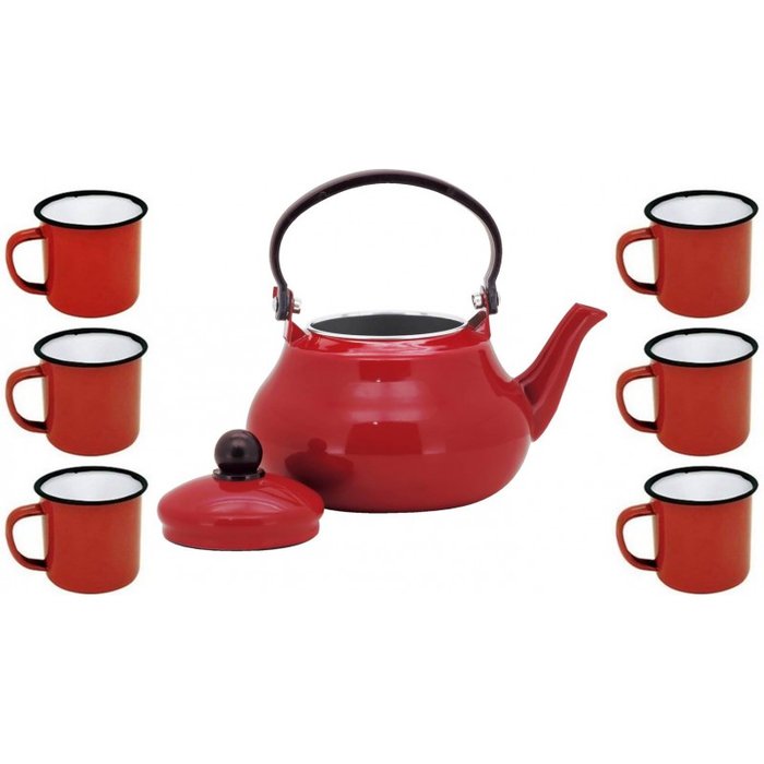 Conjunto Esmaltado Chaleira Tradicional Vermelho 1500ml com 6 Mini Canecas - Yazi