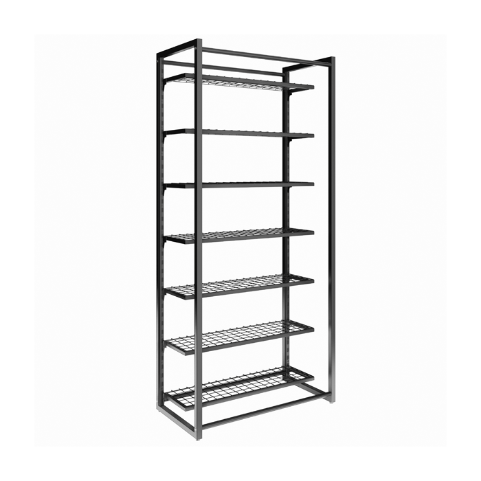A estrutura contém 7 prateleiras de aço e tela, com excelente acabamento em pintura epóxi, garantindo a durabilidade que sua loja merece. Aqui você compra estante de aço preta ou branca, além de outros móveis para sua loja.