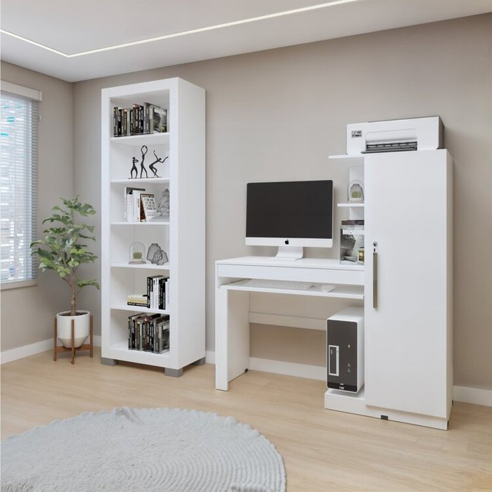 Conjunto Estante Flex 5 Prateleiras e Escrivaninha com 1 Porta Branco