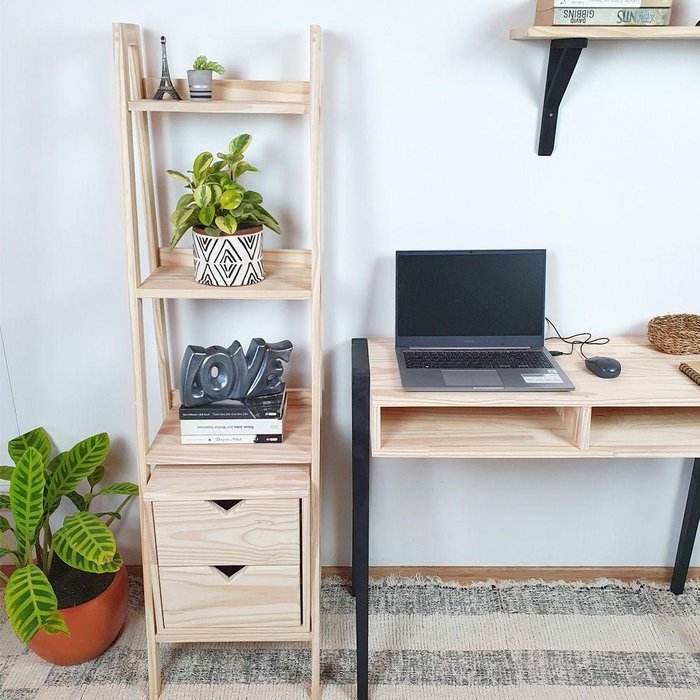 Conjunto Estante Vitória com Nicho Gaveteiro em Madeira de Pinus Natural