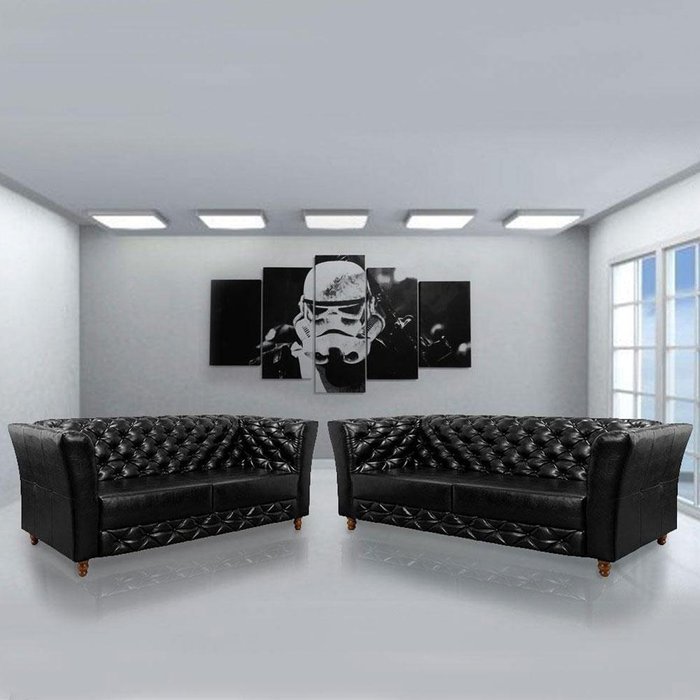Conjunto Estofado Chesterfield em Courissimo 2 e 4 Lugares Preto