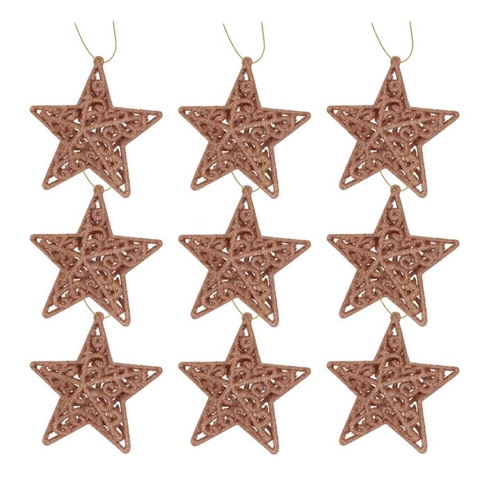 Conjunto Estrela Tridimensional Arabesco Rosê 11cm Enfeite Árvore 8 Unidades - Magizi