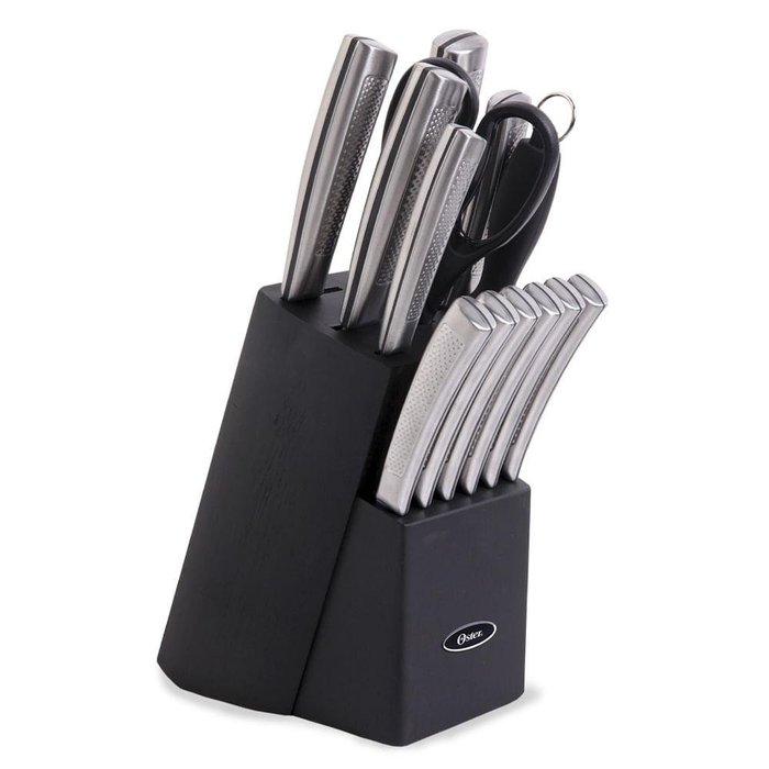 O conjunto de cutelaria Wellisford 14 peças Oster com bloco de madeira oferece cortes com qualidade de chef.