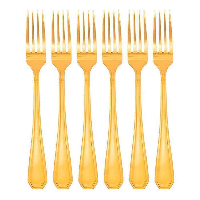 Conjunto Faqueiro 18 Peças Jogo Talheres de Mesa Jantar Garfo Faca Colher Victoria Gold Inox dourado
