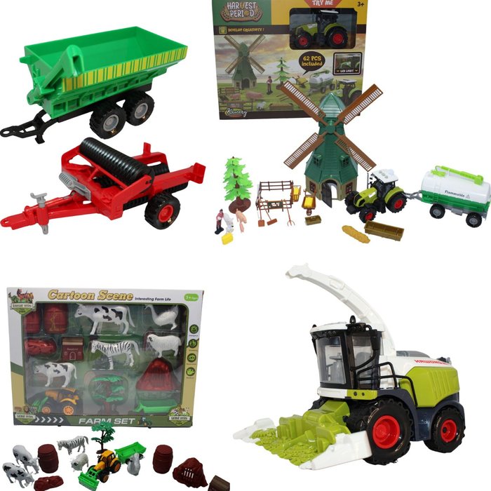 Conjunto Fazenda Tratores, Animais, Cercados, Moinho - 78pc