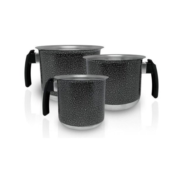 Conjunto Fervedor Alumínio Leiteira Canecão Café 3 Peças - Preto Craqueado Preto Craqueado