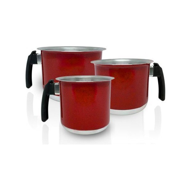 Jogo de Fervedores de Alumínio Colorido - 3 Peças - Alumínios Portela Adicione praticidade e estilo à sua cozinha com o Jogo de Fervedores de Alumínio Colorido da marca Alumínios Portela. Com três tamanhos diferentes, este conjunto é ideal para diversas preparações, garantindo durabilidade e eficiência no cozimento. Seu design colorido traz um toque especial à decoração da sua cozinha. Especificações do Produto: Material: Alumínio resistente, garantindo durabilidade e fácil condução de calor. Uso: Não é apto para lava-louças, recomendando-se a lavagem manual para maior durabilidade. Medidas do Jogo: Canecão 12: Altura 11,5 cm, diâmetro 12 cm, capacidade de 1,3 litros Canecão 14: Altura 12 cm, diâmetro 14 cm, capacidade de 1,7 litros Canecão 16: Altura 12,5 cm, diâmetro 16 cm, capacidade de 2,3 litros Destaques: Versatilidade: Perfeito para preparar cafés, leite, chá e outras receitas de forma prática. Estilo e Função: Design colorido que agrega beleza ao ambiente, com tamanhos ideais para diferentes necessidades. Transforme o momento de cozinhar em uma experiência prática e agradável com o Jogo de Fervedores Alumínios Portela!