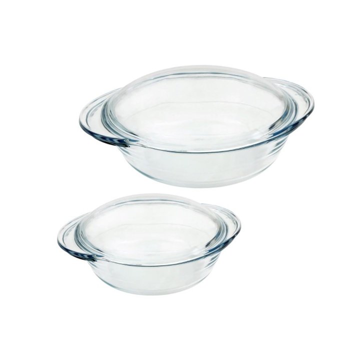 O Conjunto de Formas Redondas em Vidro Borosilicato Marinex Celebrity possui 1 forma redonda média 2,3L e 1 forma redonda grande 2,8L. É 100% Higiênico, pois não retém odores e não mancha.