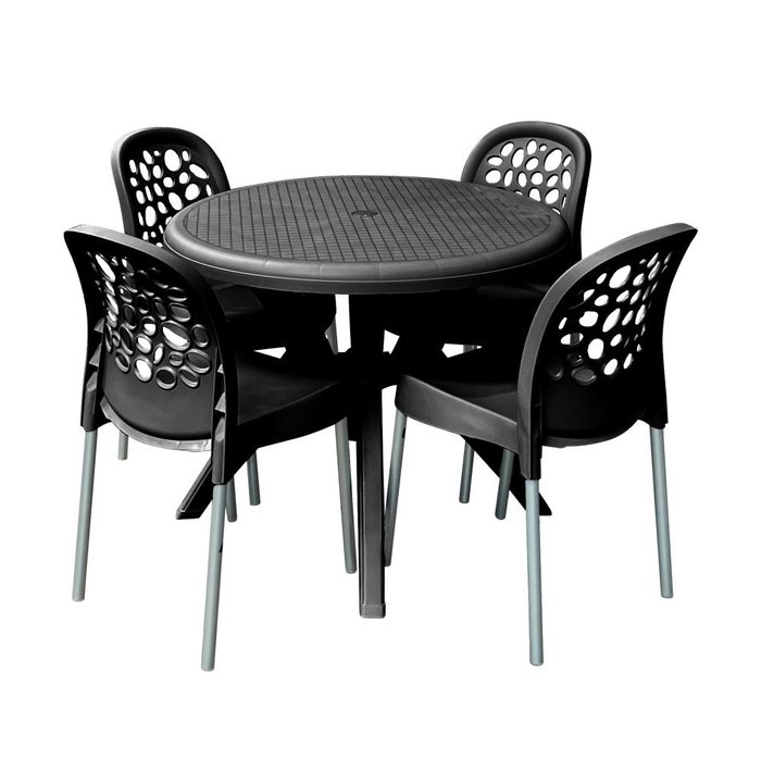 Conjunto Forte Plástico Deluxe Mesa Redonda 90cm com 4 Cadeiras - Preto